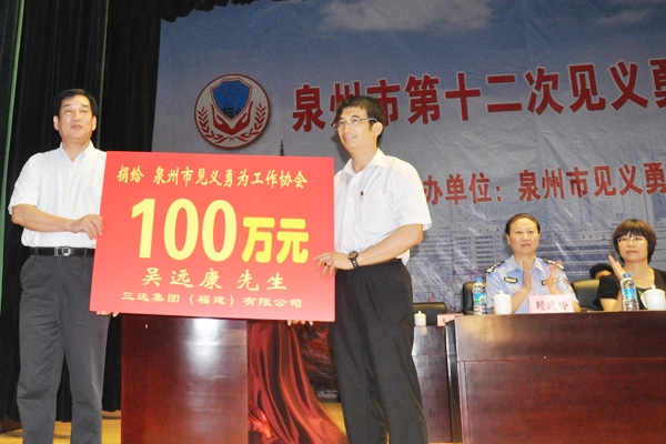 三遠集團董事長、總裁吳遠康先生向泉州市見義勇為工作協會捐款100萬元人民幣