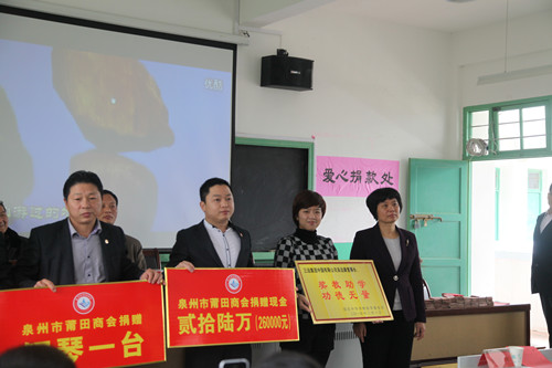 2014年3月1日上午,“園莊中學獎教助學基金籌備會暨基本捐贈儀式”于園莊中學會議室隆重舉行,三遠集團代表參與了本次捐贈儀式,被授予“獎教助學,功德無量”光榮匾.每一所學校都是托起希望的搖籃,他們培養著建設未來人才。 園莊中學是仙游縣園莊鎮唯一一所中學,建校40余年來培養出諸多優秀人才,校友中有博士、博士后、教授、廳級干部和眾多民營企業家,收獲了無數榮譽。由于硬件條件無法達到福建省三級達標學校的標準,這一所充滿園莊學子希望的學校將面臨被并校的境遇。 三遠集團董事長、總裁吳遠康先生悉知這一情況,即決定捐贈園莊中學獎教助學基金10萬元人民幣,留住園莊中學,為園莊學子們的希望和夢想出一份力。