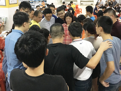 14日下午,莫蘭蒂臺風登陸前,風一陣強過一陣,雨勢亦看似一觸即發!為了讓活動順利安全地舉辦,中秋博餅宴的地址臨時變更至室內,時間亦提前。下午5點許,博餅宴在歡樂的搖骰子聲中熱鬧開場,現場歡鬧聲、贊嘆聲交雜,高潮不斷。在各桌都陸續博出“狀元”后,博餅宴進入就餐階段,直至“狀元王中王”的博弈開始,又是一輪新的高潮來襲!狀元王中王終是如期而臨,博餅宴亦結束在一片和樂歡喜的氣氛中。