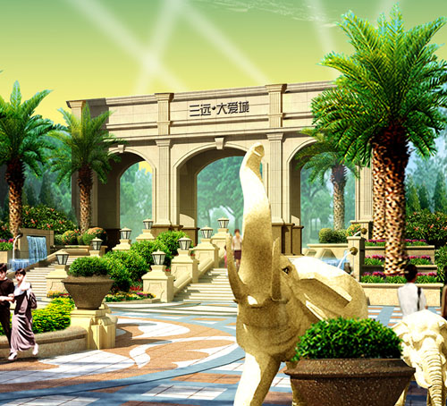 迎賓入口廣場—威尼斯風情 尊貴、簡約的特色大門,象征著財富與地位的大象雕塑,相映成趣的特色水景、疊水及景墻,還有高大而名貴的喬木……這一切共同為您打造高貴奢華的小區主入口。夜幕降臨,廣場地面的點點燈光,如同群星璀璨的夜空,讓您回家的路不再孤單。 要感受威尼斯風情,您不必再舍近求遠,三遠·大愛城就在您的家門口為您呈現,為您提升生活的高度。 游泳池——地中海風情 小區擁有無邊界超大園林游泳池,總長超過60米,分為成人池、兒童池、按摩池三個區域,泳池周邊襯以高大名貴的棕櫚科植物和迷人優雅的雞蛋花,讓泳池細膩而又自然地邂逅園林的脈動;鳥兒清脆地鳴叫,樹葉被風吹得沙沙響,陽光融融地傾瀉,孩童天真爛漫地嬉鬧…… 兼收并蓄、渾然天成、以人為本的景觀語言,造就了三遠·大愛城不可復制的經典,相信您會毫不猶豫地陶醉在這一片廣闊而美麗的蔚藍色水域。 中心庭院——西班牙風情 水,是靈動的,富于變化的;水,必然是三遠·大愛城重要的建筑元素。一條彎彎的溪流時斷時續、時隱時現、時寬時窄,在庭院中快樂地環繞和穿行。漫步庭院,映入眼簾的時而有瀑布,時而是小溪,時而還有旱河川……或靜或動,或急或緩。五彩的鮮花熱情地綻放,別致的小品在不經意間打動著您的心,沿著溪流布置的小橋、涼亭、長凳、廣場,一切是那么周到,一切是那么自然,一切又是那么和諧。或一人靜享如詩景致,或與家人一起聚會、玩耍,或與友人閑話家常。在這里,您什么都可以不做,什么都可以不想,除了享受無盡的愜意與舒適。