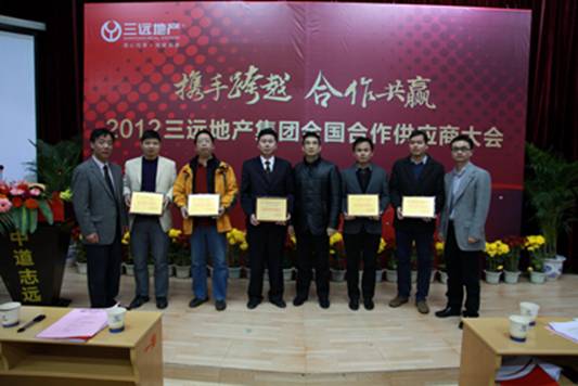 2012三遠(yuǎn)地產(chǎn)集團(tuán)全國合作供應(yīng)商大會嘉賓合影 人氣爆棚的大會現(xiàn)場 2012年2月11日,三遠(yuǎn)地產(chǎn)集團(tuán)全國合作供應(yīng)商大會在泉州市刺桐南路中遠(yuǎn)學(xué)校內(nèi)隆重召開。活動當(dāng)日,現(xiàn)場人氣爆棚,三遠(yuǎn)地產(chǎn)集團(tuán)領(lǐng)導(dǎo)與來自全國各地200多位供應(yīng)商合作伙伴歡聚一堂,共同探討雙方合作共贏的發(fā)展模式。 集團(tuán)董事長、總裁吳遠(yuǎn)康先生致辭 集團(tuán)董事、常務(wù)副總裁陳章勃先生致歡迎辭 本次大會圍繞“公平、公正、合理”的三遠(yuǎn)供應(yīng)商合作理念,吸引了眾多來自全國各地的工程建設(shè)、景觀設(shè)計(jì)、營銷代理等行業(yè)的數(shù)百家知名企業(yè)到場。當(dāng)天,三遠(yuǎn)集團(tuán)董事長、總裁吳遠(yuǎn)康先生,集團(tuán)副董事長賴新達(dá)先生,集團(tuán)董事、常務(wù)副總裁陳章勃先生等公司領(lǐng)導(dǎo)均出席了大會,與廣大供應(yīng)商合作伙伴分享了三遠(yuǎn)地產(chǎn)集團(tuán)近幾年供應(yīng)商合作業(yè)績及未來發(fā)展方向。 集團(tuán)董事會吳董、賴董、陳總為優(yōu)秀合作單位頒發(fā)獎牌 除此之外,集團(tuán)總部工程管理、成本控制、審計(jì)內(nèi)控等多個中心負(fù)責(zé)人,還向各供應(yīng)商伙伴們詳細(xì)解讀了三遠(yuǎn)地產(chǎn)集團(tuán)的供應(yīng)商合作政策,表達(dá)了三遠(yuǎn)善用供應(yīng)鏈管理新思維,定位與合作企業(yè)關(guān)系,建立雙方利益共享機(jī)制、雙向激勵機(jī)制的供應(yīng)商管理辦法。各中心負(fù)責(zé)人著重闡述了三遠(yuǎn)地產(chǎn)公正透明的合作姿態(tài),并明確了對供應(yīng)商的企業(yè)實(shí)力、產(chǎn)品質(zhì)量、性價配比等合作條件的要求,促使各合作企業(yè)都了解配合流程,提高合作效率。 大會上,三遠(yuǎn)地產(chǎn)集團(tuán)向5家優(yōu)秀供應(yīng)商伙伴頒發(fā)了“優(yōu)秀合作單位”獎牌,借以表彰他們在2010-2011年度與三遠(yuǎn)地產(chǎn)集團(tuán)良好的合作關(guān)系。多家與會合作企業(yè)領(lǐng)導(dǎo)人登臺表達(dá)了與三遠(yuǎn)地產(chǎn)集團(tuán)的合作印象,高度贊揚(yáng)了三遠(yuǎn)地產(chǎn)強(qiáng)力有效的供應(yīng)商管理制度以及“跨越發(fā)展、合作共贏”的合作原則。 喜慶歡樂的招待晚宴現(xiàn)場 精彩的晚宴節(jié)目表演 當(dāng)晚,集團(tuán)還為與會的供應(yīng)商伙伴籌備了一場豐盛的招待晚宴。流光、華服、歡歌、樂舞……本屆三遠(yuǎn)地產(chǎn)集團(tuán)全國合作供應(yīng)商大會在一陣陣祝酒洽談聲中,在一次次抽獎歡呼聲中,畫上了圓滿的句號。 通過此次全國供應(yīng)商大會,三遠(yuǎn)希望完善企業(yè)自身合作供應(yīng)商鏈條,加深集團(tuán)與合作方的相互了解,促進(jìn)建立與全國各地有實(shí)力的優(yōu)秀供應(yīng)商企業(yè)長期穩(wěn)定的供應(yīng)商戰(zhàn)略合作伙伴關(guān)系,攜手跨越,合作共贏,為雙方企業(yè)及房地產(chǎn)行業(yè)的繁榮發(fā)展做出更大的貢獻(xiàn)。
